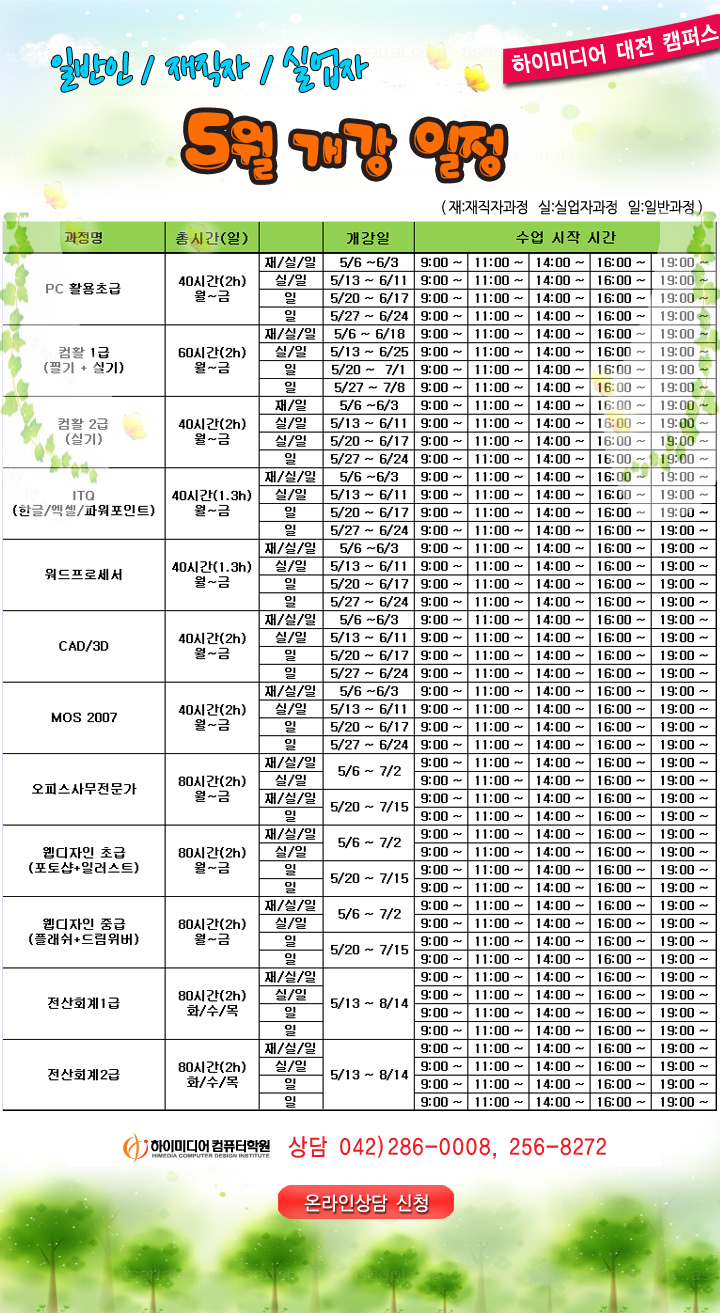 [정규개강]5월 과정 일정 안내입니다.-대전캠퍼스
