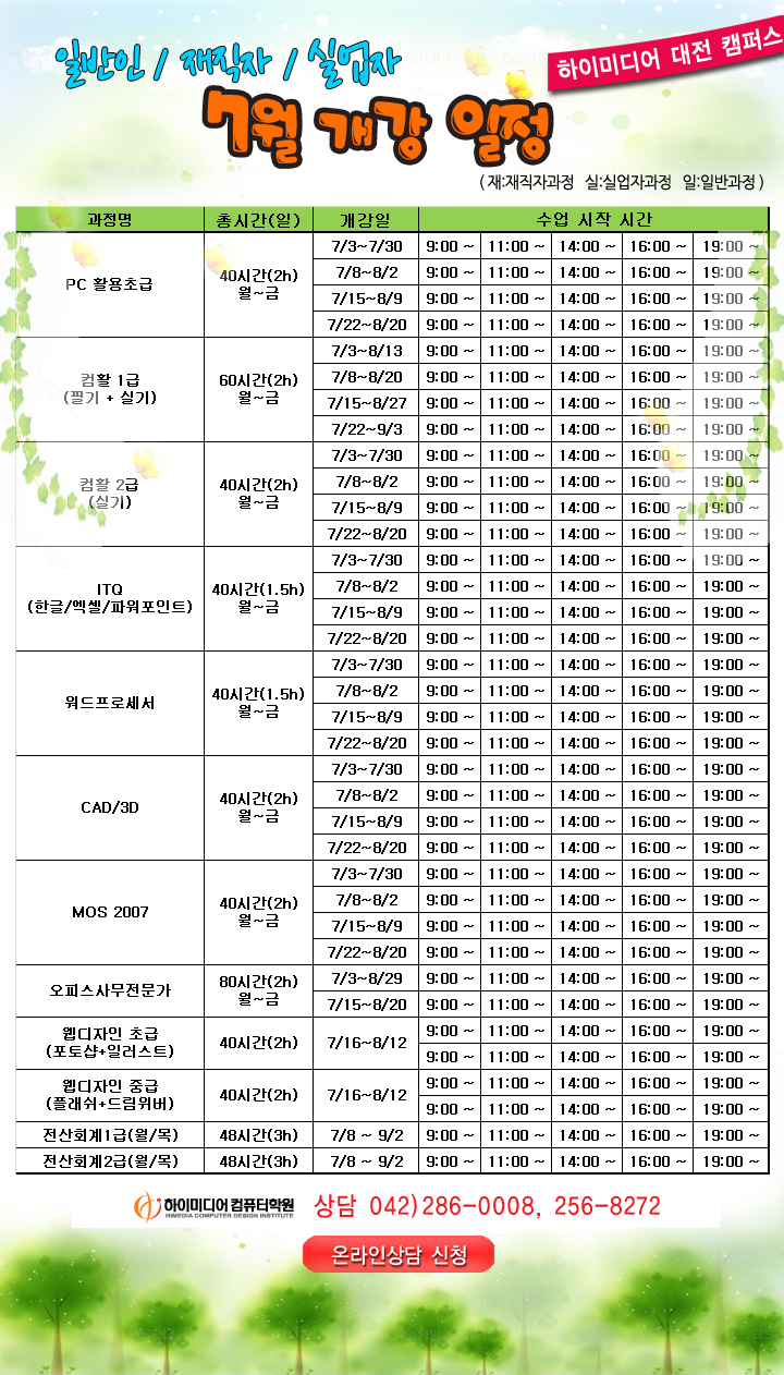 [정규개강]7월 과정 일정 안내입니다.-대전캠퍼스