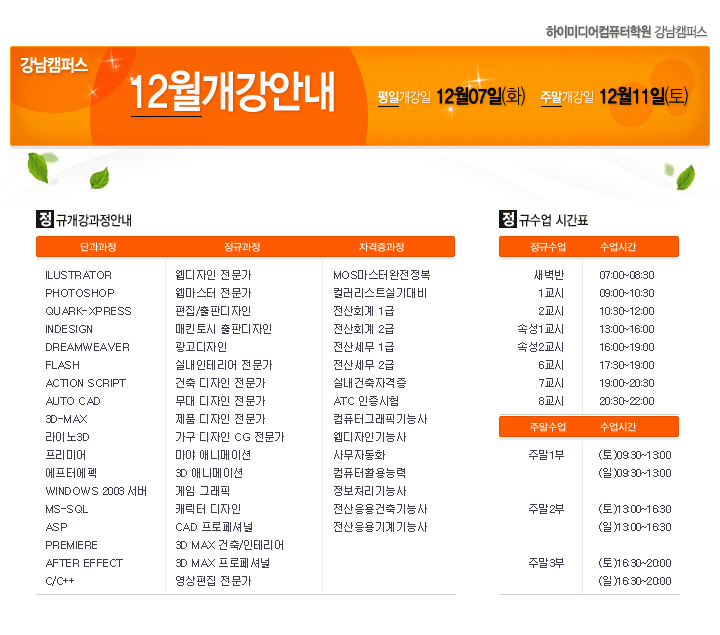 [정규개강] 2010년12월 강남캠퍼스 정규개강안내