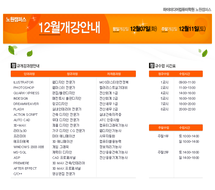 [정규개강] 2010년12월 노원캠퍼스 정규개강안내