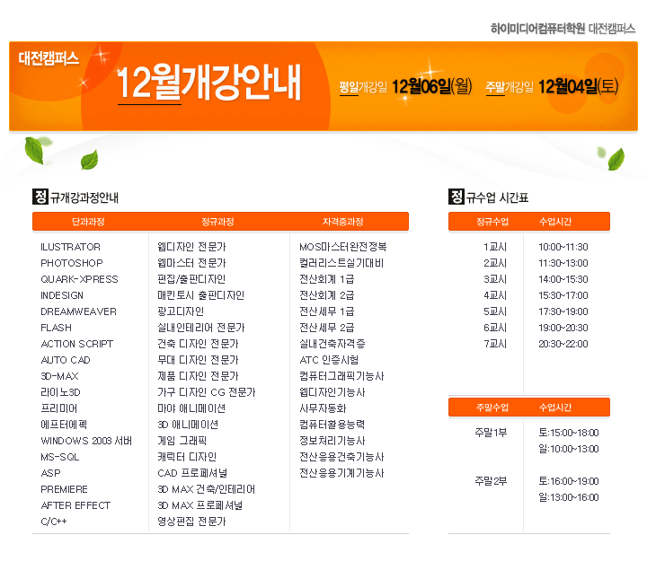 [정규개강] 2010년12월 대전캠퍼스 정규개강안내